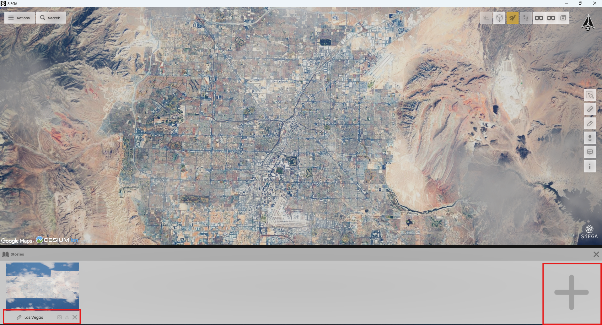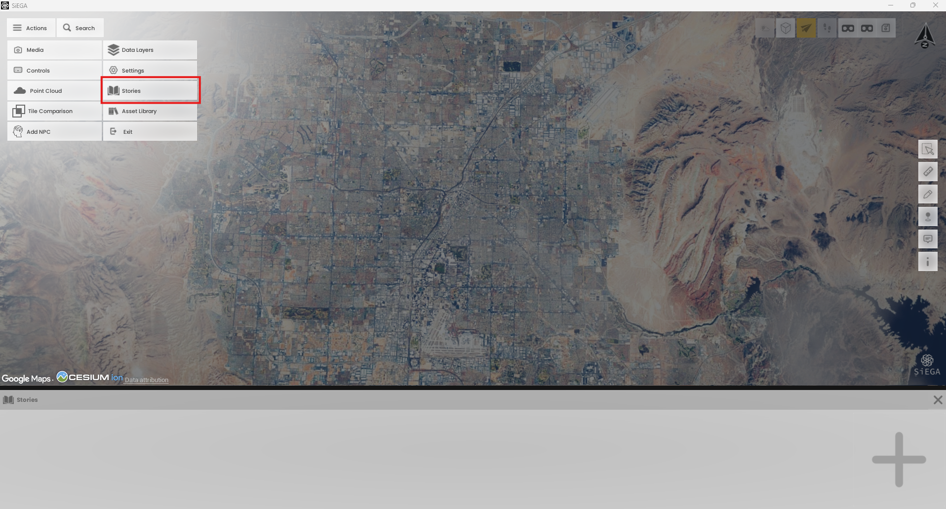 To access the stories feature, open the Actions Menu and click the Stories button. After clicking, a new window will appear at the bottom of the screen.